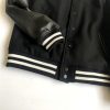 We used high-quality varsity snaps and acrylic ribbing buttons, collars, and cuffs for this varsity jacket for men. We used acrylic ribbing in black color.
