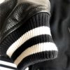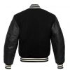 varsity jacket for men is made of Melton wool black and genuine cowhide leather sleeves in top grain. inside black quilted diamond lining.