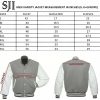 SJI Men Varsity Jacket Measurement in Inches (U.K=Europe)